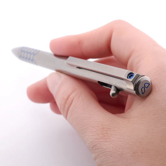 Magnus ClickShift Titanium Tumbled Ice Blue Grip "Small Frag" Ballpoint Pen