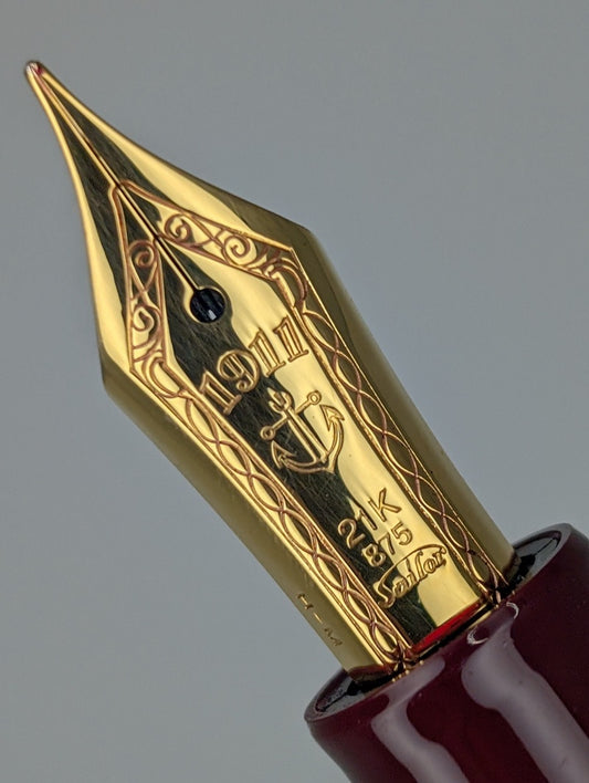*Consignment* Sailor 1911L Realo Maroon/Gold Fountain Pen 21k Gold Medium Nib