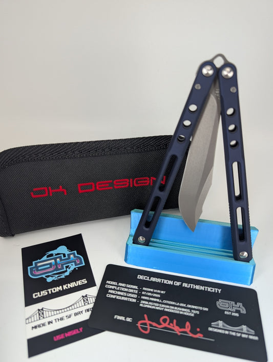 JK Design Regime V1 R1 187 Aluminum Navy Live Blade Balisong