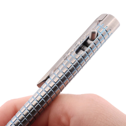 Magnus ClickShift Titanium Tumbled Ice Blue Grip "Small Frag" Ballpoint Pen