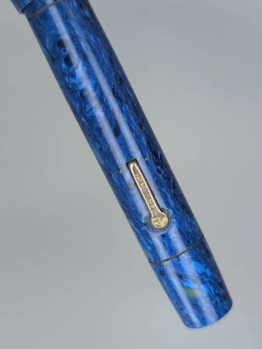 *Consignment* Krone Moderne Cellophane Blue Fountain Pen 18k Gold Medium Nib
