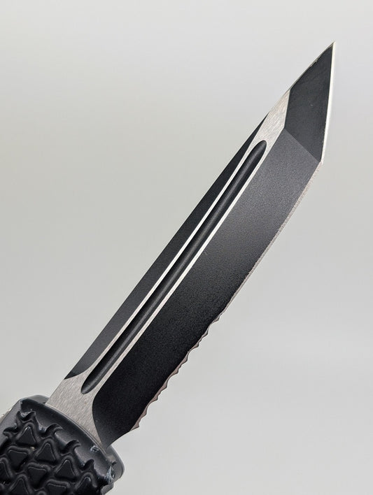*Consignment* Microtech Ultratech Tread Black Elmax Tanto Partial Serrated Out the Front Knife