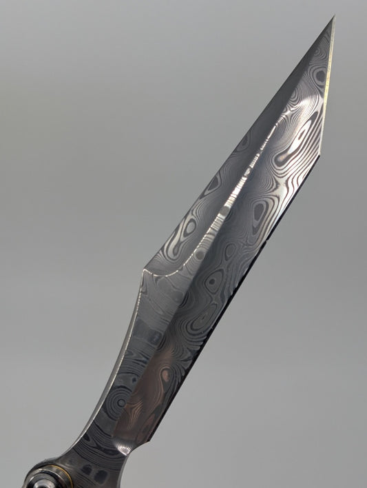 *Consignment* Ceroni Knives Damasteel Scorpion Blade Pinless Gold Web Ti Live Blade Balisong