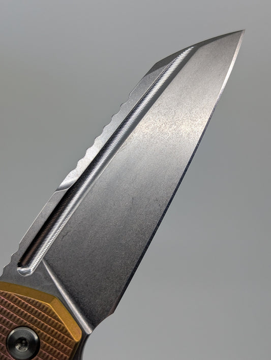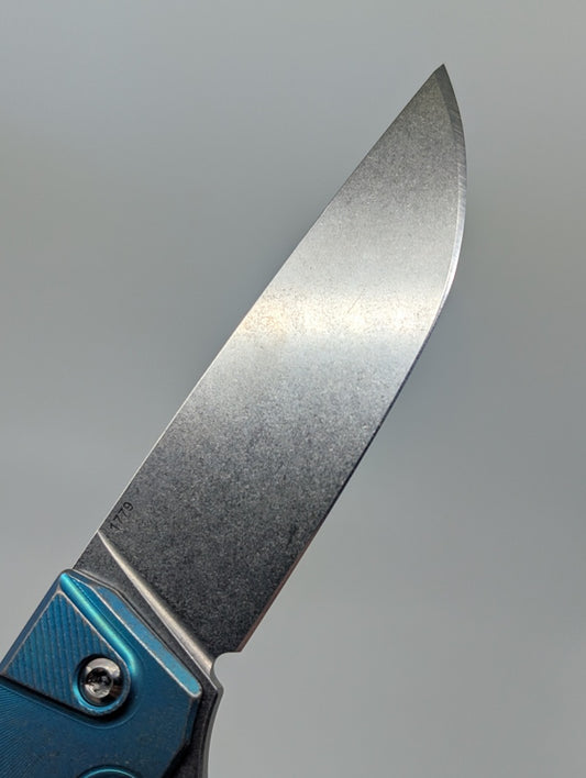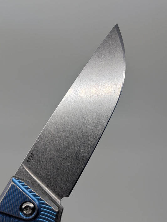 MachineWise Sonora Streamline E-Blue w/ Distress (S90V | Ti Bolster) Buttonlock Folding Knife #1732
