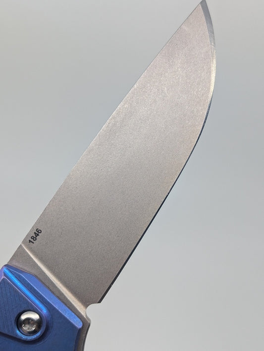 MachineWise Sonora Blurple Ti ( S90V | Brass Bolster | Sun Ray )Integral Buttonlock Folding Knife #1846 *BLEM*