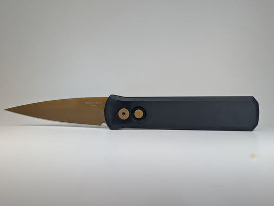 Protech Godson Black / Tan PVD 154CM / Tan PVD Hardware Auto Folding Knife
