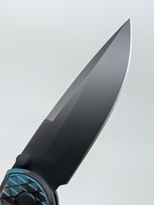 Protech Mordax Black Aluminum Acid Wash 20CV Button Lock Folding Knife