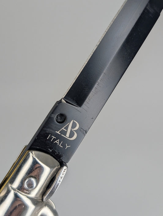 *Consignment* Armando Beltrame Horn Handle Black Blade Italian Stiletto Auto Folding Knife