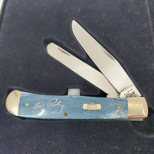 Case Knives Elvis Trapper/Zippo Lighter Embellished Smooth Mediterranean Blue Bone Gift Set