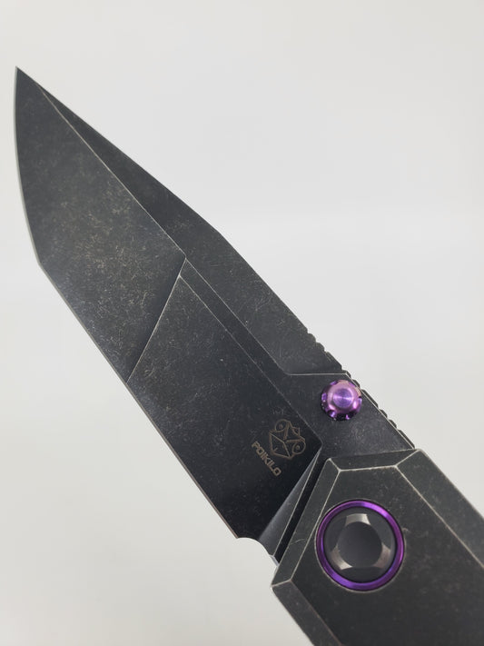 Poikilo Tactical Salvator Black / Purple w/ Blurple Clip Framelock Folding Knife
