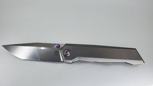 Poikilo Blades Tactical Salvator Pearlescent Stonewash M398 Thumbstud Framelock Folding Knife