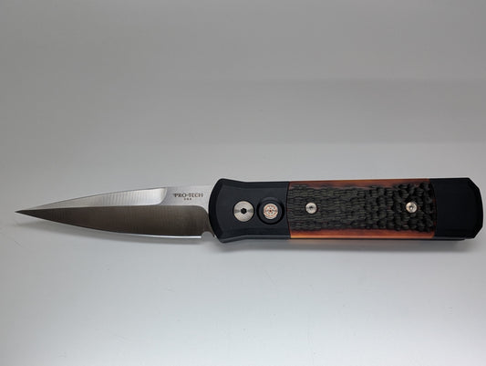 Protech Godson Custom Jigged Bone Inlay Mosaic Buttonlock Auto Folding Knife