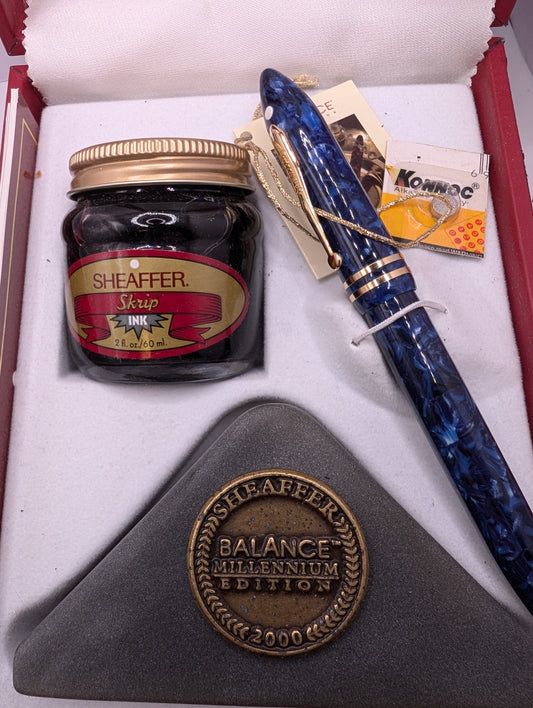Sheaffer Balance Millennium Edition Desk Set from 1999 Fountain Pen 18k Gold Nib