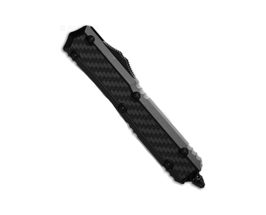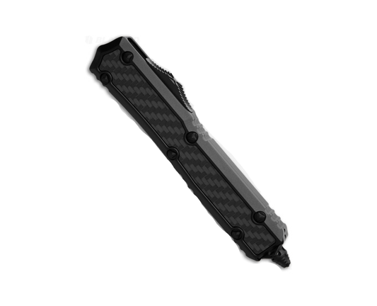 Microtech Makora D/E Tactical Full Serrated Nickel Baron Internals CF Inlay Out the Front Knife