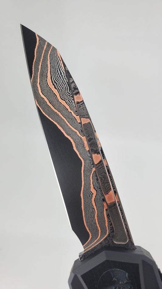 Microtech Cypher II Marfione Select Baker Forge Coppermai Damascus Wharncliffe Out the Front Knife