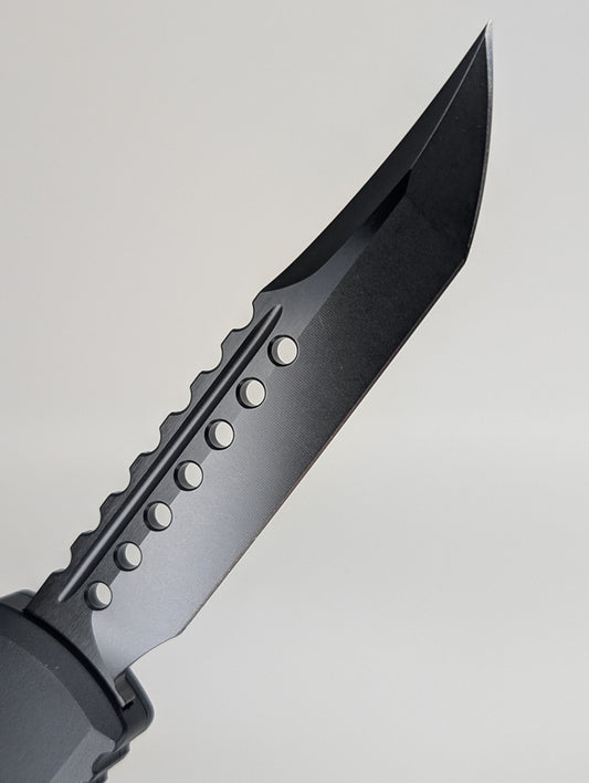 Microtech Ultratech ZBP T/E Shadow DLC Tanto Full Serrated Out the Front Knife