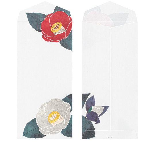 Midori Envelope 154 Silk-Printing Red and White Camellia S2