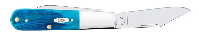 Dazzling, Sawcut jigged bone in stunning Caribbean Blue draws the eye to a convergence of color, craftsmanship, and convenience. This azure stunner complements a design that features the Case Oval Script shield, accenting the mirror-polished Tru-Sharp™ surgical steel blades. Wow your friends and family with this glittering jewel. The classic Barlow is back! This vintage-era Jack Knife design dates back to the early 1900's and is characterized by a single oversized pocket end bolster. Stunning, colorful handles of Bone, Kirinite®, Wood and Synthetic highlight this treasured and timeless Case pattern. Feel the history and savor the good looks of the one and only Case® Barlow. This knife is constructed with Case Tru-Sharp™ stainless steel which is a special high-carbon steel that helps the blades hold an edge longer than conventional steel. It also offers extraordinary blade strength and corrosion resistance. Comes conveniently packaged in a box. Made in Bradford, PA, USA from domestic and imported materials.