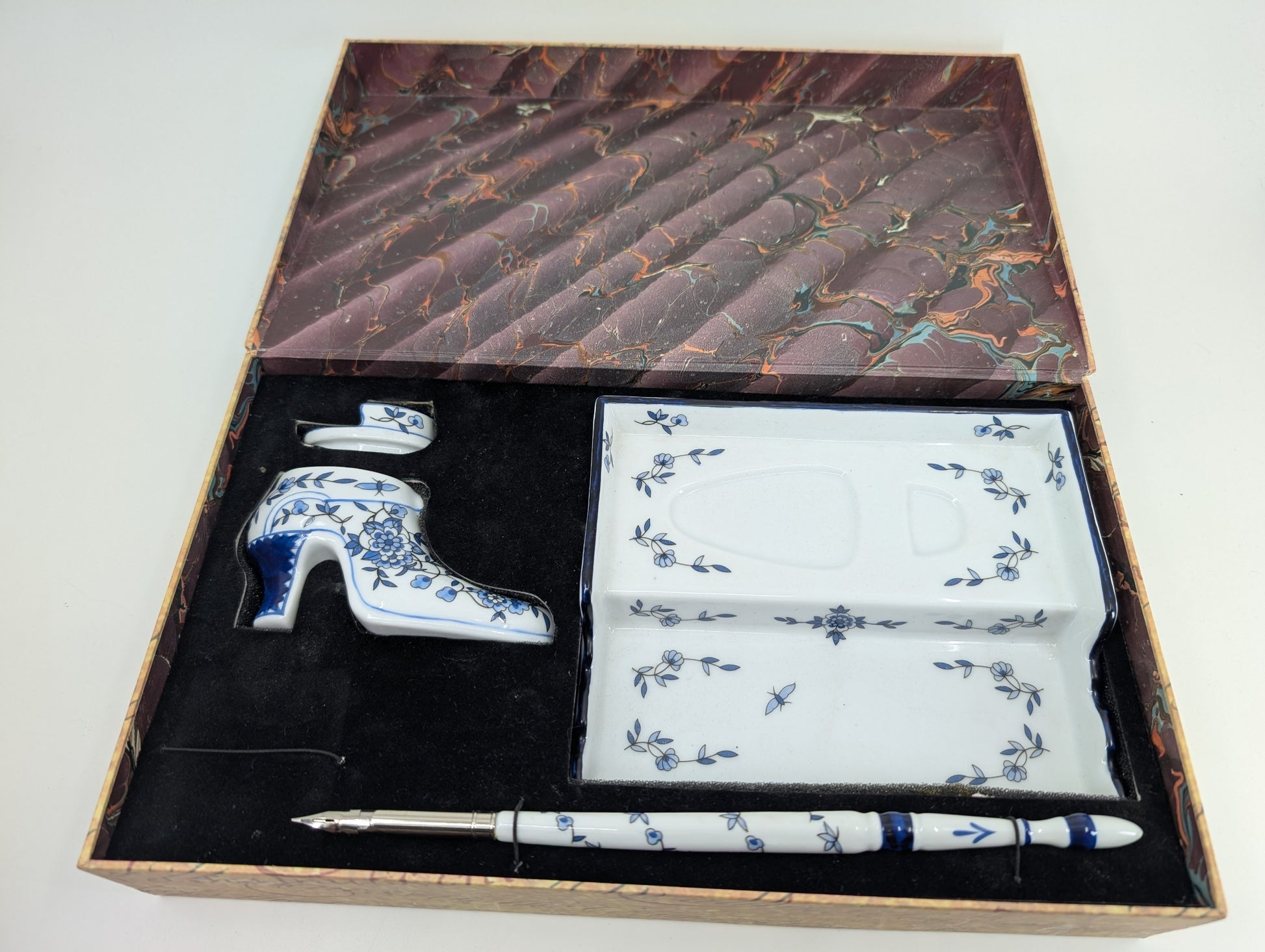 *Consignment* Charles II Delft Inkwell Vintage Calligraphy Set