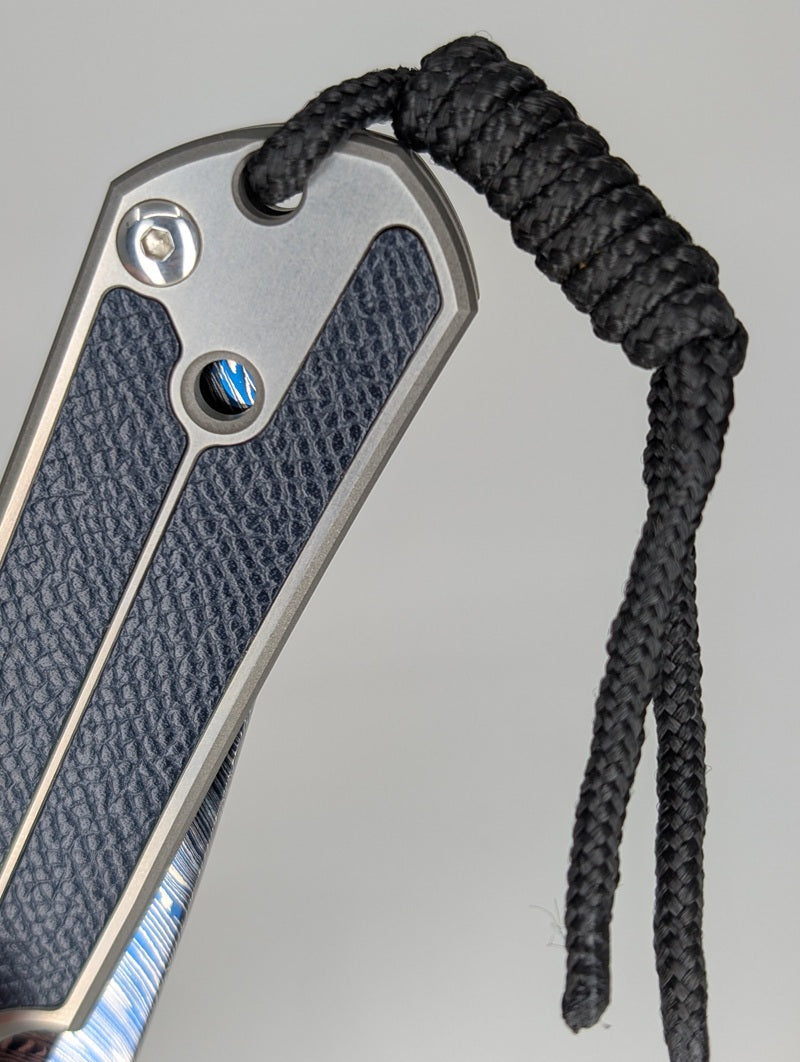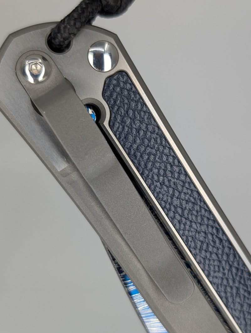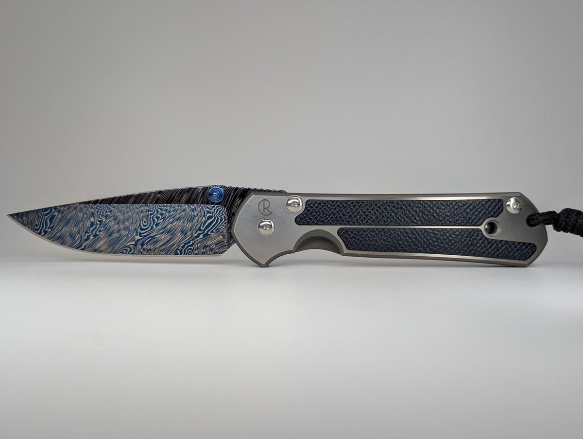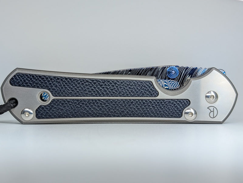 *Consignment* Chris Reeve Large Sebenza Classic 2000 Blue Calfskin Inlay w/ Blued Damascus Firestorm Framelock Folding Knife