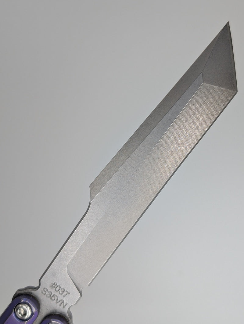 Experience the cutting edge of balisong design and performance with the Franken Forge Voltaic Purple Live Blade Balisong, a true standout in the world of flipping.