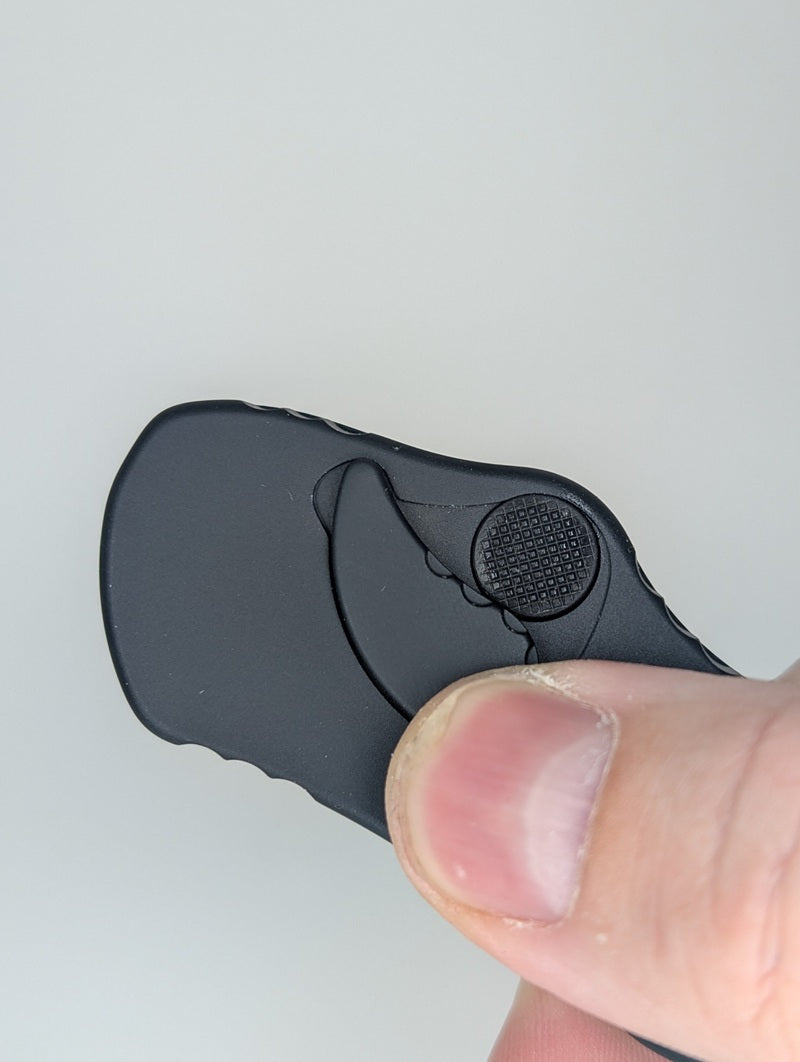 Introduced in 2015 the Hydra pioneered a button safety. The textured firing button is protected by a sculpted titanium swivel cover that adds both aesthetics and assurance.