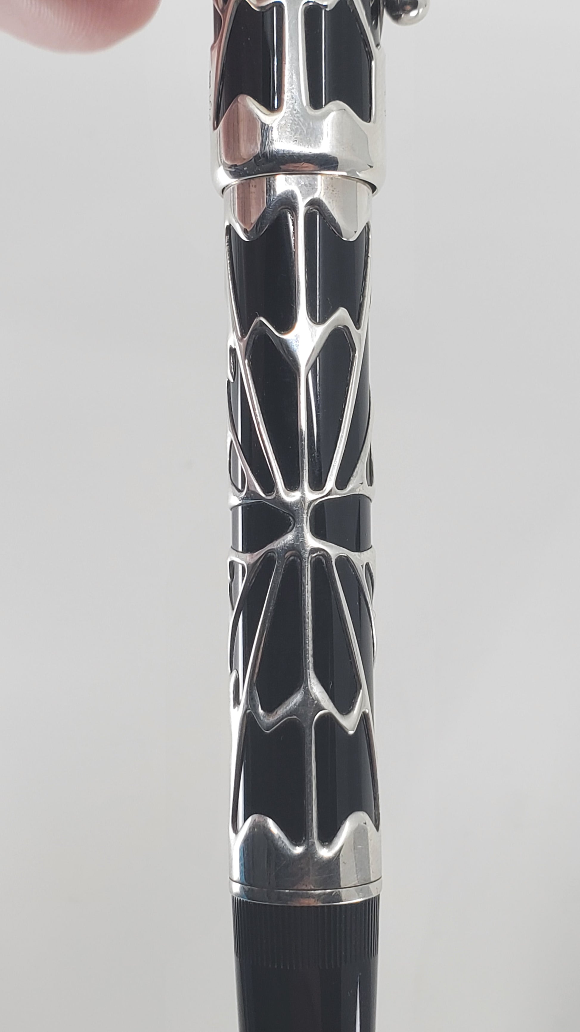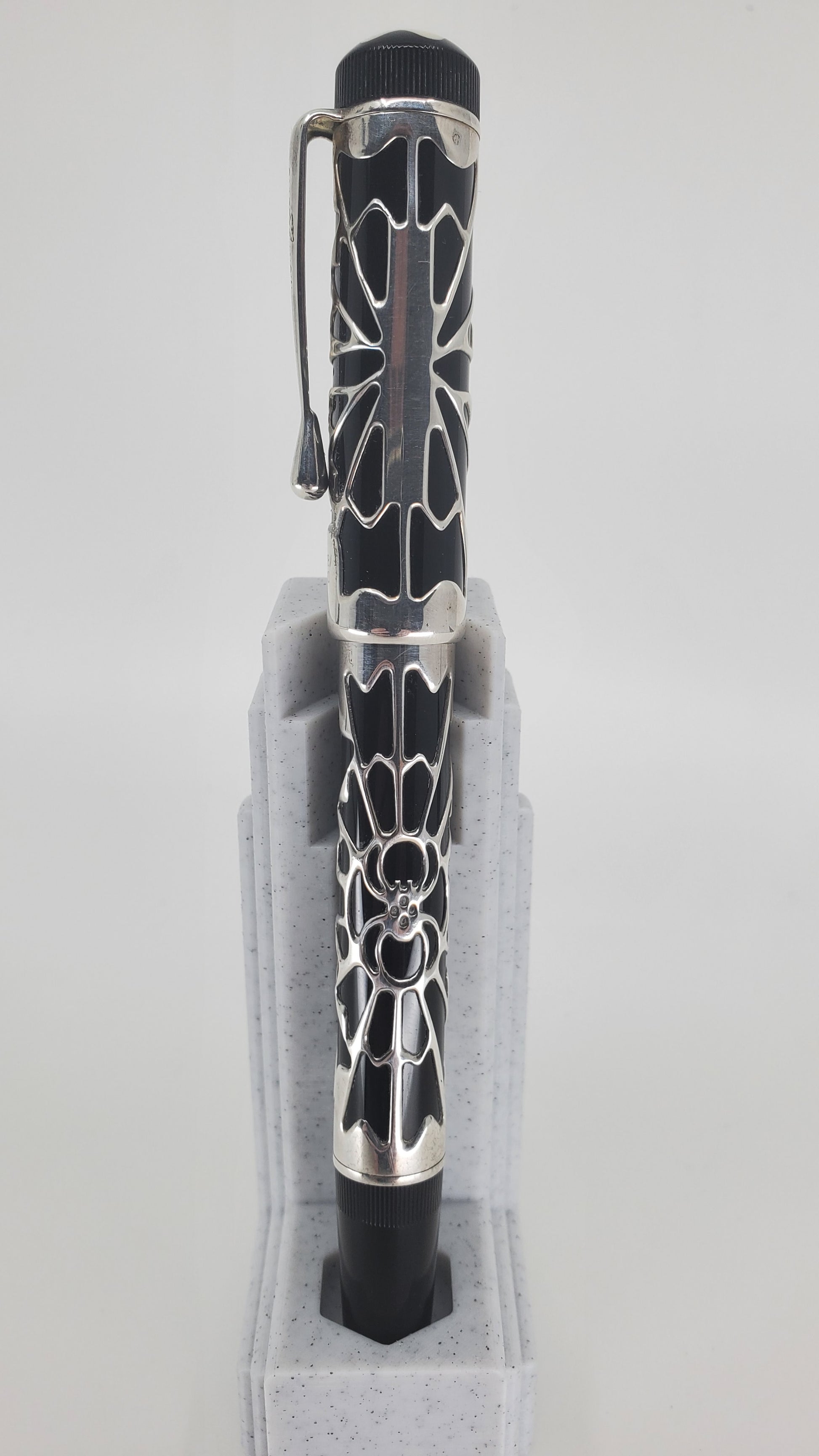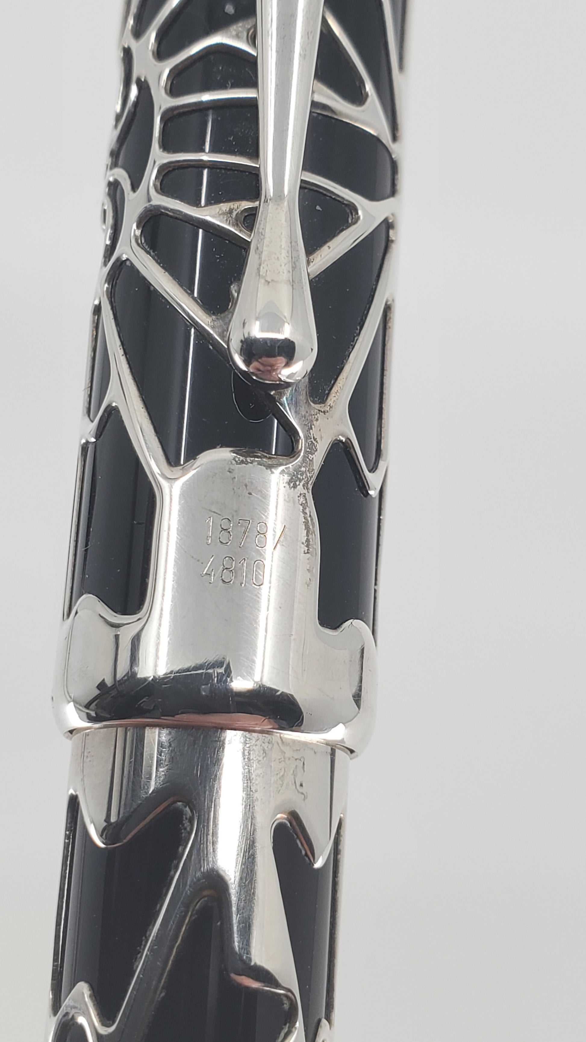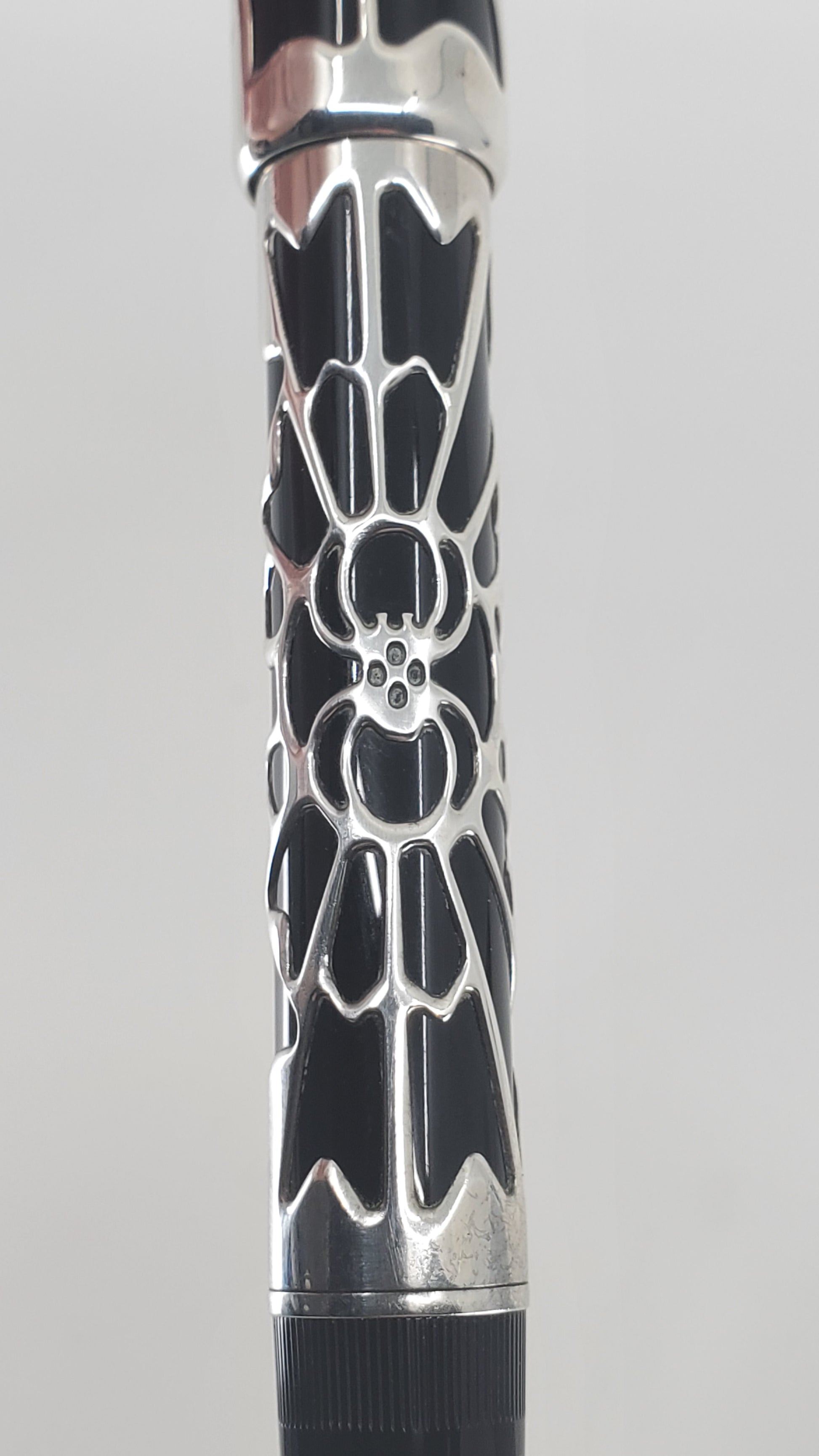 - Handcrafted rhodium-coated Au 750 solid gold nib also bears a delicately engraved spider.