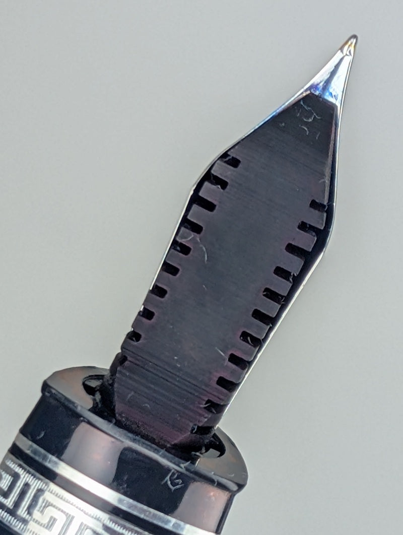 At the heart of this exceptional pen lies a meticulously crafted 18k Gold Fine Nib. This nib is designed to provide a smooth, consistent, and precise writing experience, perfect for detailed notes, elegant script, and everyday use. This nib has been tuned by John Mottishaw