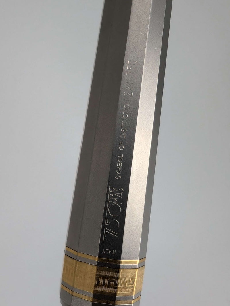 Introducing the OMAS T2 Titanium 75th Anniversary Limited Fountain Pen, a remarkable tribute to OMAS's legacy of fine craftsmanship and innovation. Launched in 2000, this limited-edition pen, numbered 221 out of 750, celebrates 75 years of excellence in writing instruments.