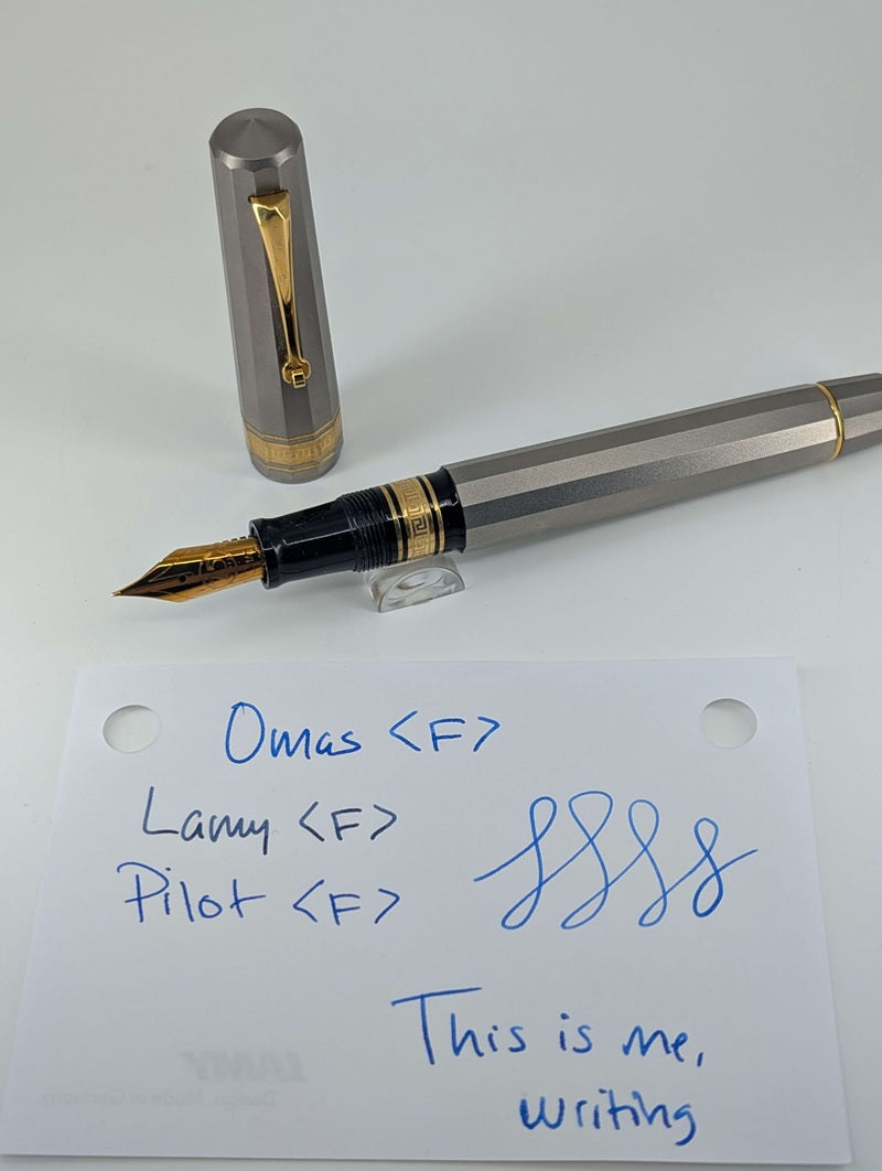 Crafted entirely from titanium, the T2 boasts a sleek, modern design that exudes sophistication and durability. The pen's lightweight yet robust body features a matte finish, highlighting OMAS's commitment to both aesthetics and functionality. The streamlined shape and titanium construction offer a perfect balance, making it a joy to write with.