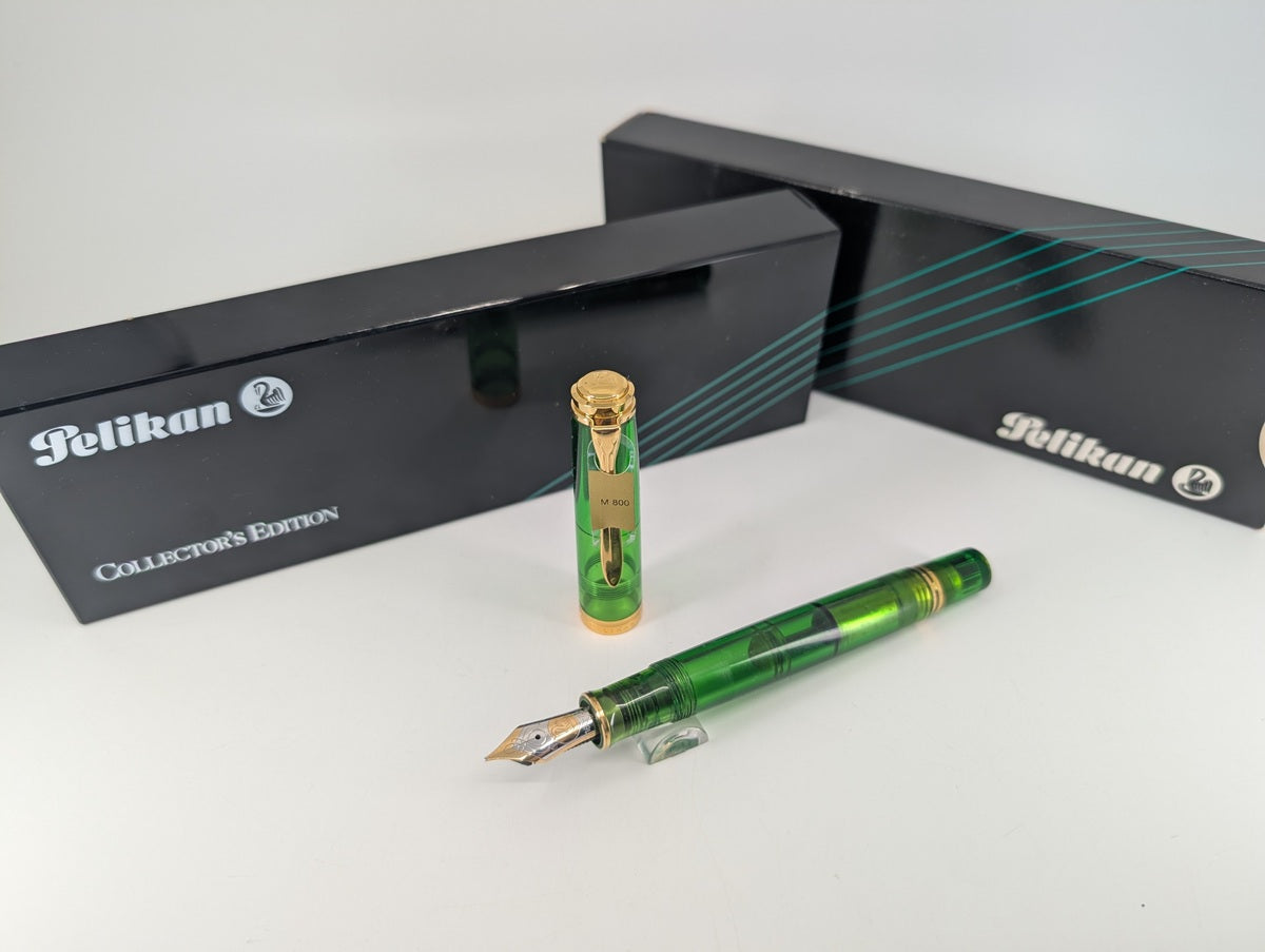 *Consignment* Pelikan M800 Transparent Green Fountain Pen 18c Gold Medium Nib