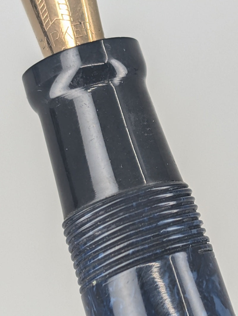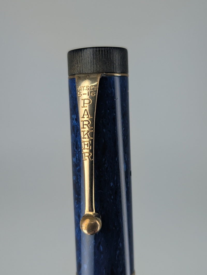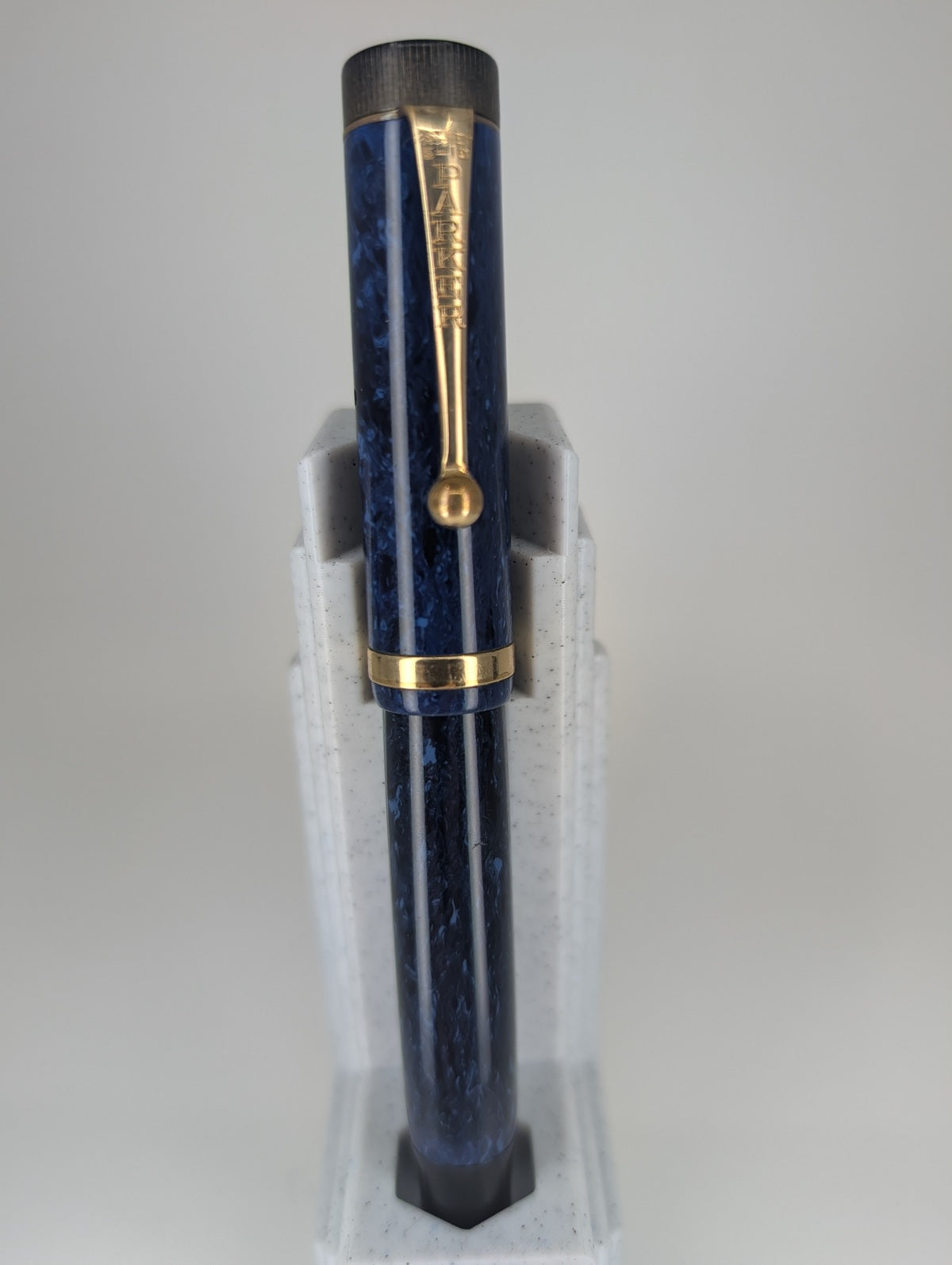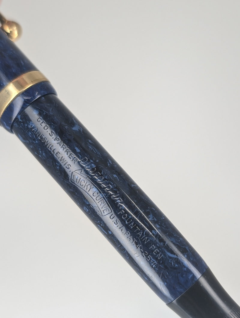 *Consignment* Vintage 1927 Parker Duofold JR "Lucky Curve" Blue Marble Fountain Pen 14k Gold Medium Nib