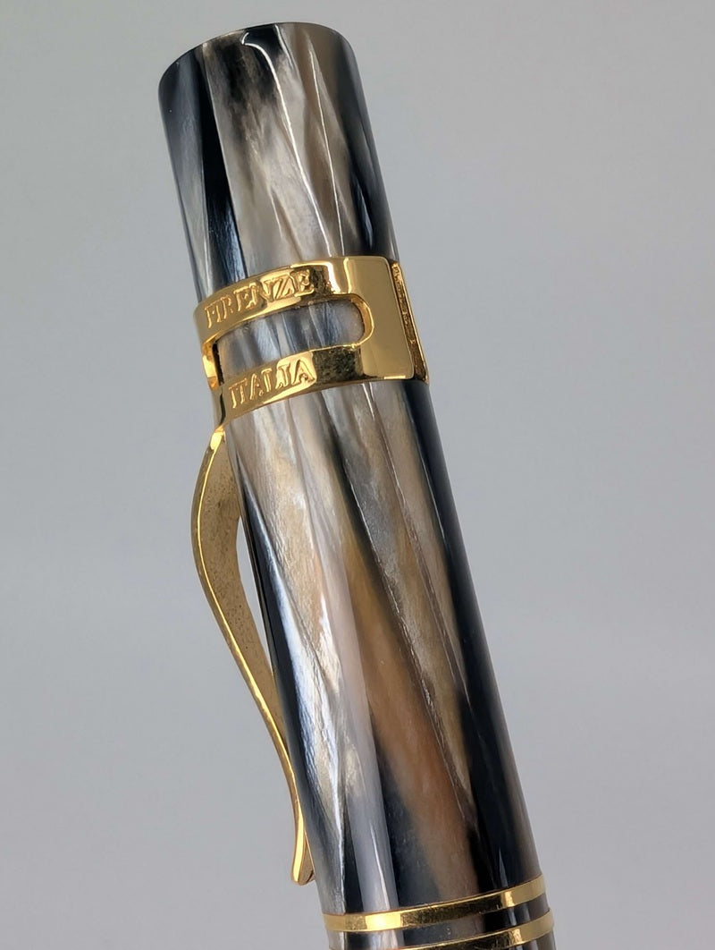 Ragtime was the first American musical genre and it gave rise to the enduring popularity and genius of Jazz. To celebrate its 20th anniversary, Visconti has now updated the original Ragtime styling in an elegant, hand-crafted limited edition. Ragtime Anniversary is a limited edition and numbered on the basis of the company foundation year: 1988. The Pens are created from acryloid, blended with gold powder which gives stunning light; honey and brown swirled waves and amber shades that perfectly match golden trims.