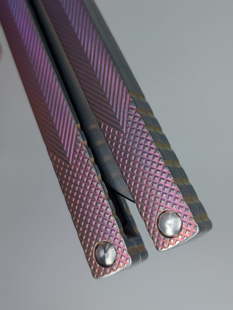 MachineWise Serif ( S35VN | Grade 5 Titanium | Blurple Distressed ) Live Blade Balisong #690