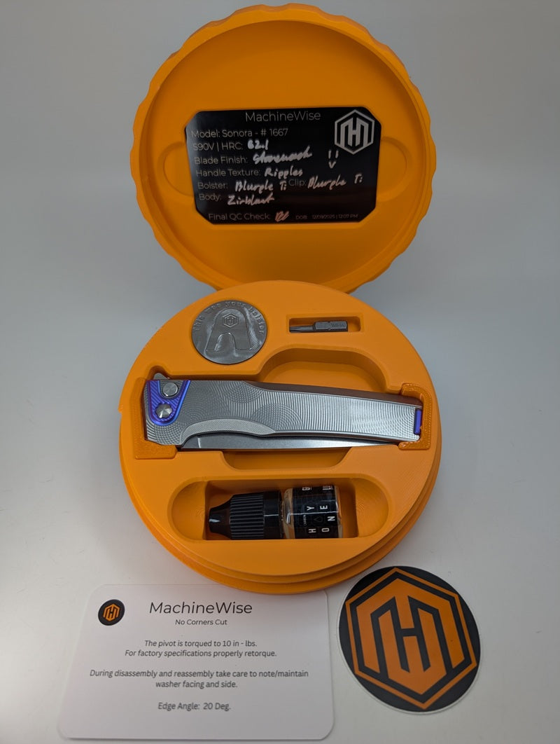 MachineWise Sonora Raw Ti (Blurple Ti Bolster | Ripples Handle) Buttonlock Folding Knife #1667