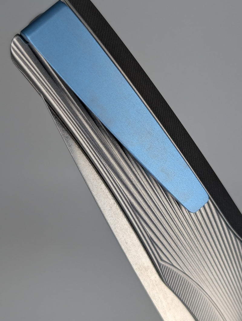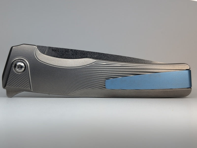 MachineWise Sonora Raw Ti (Ice Blue Ti Bolster | Sun Ray Handle) Buttonlock Folding Knife #1665