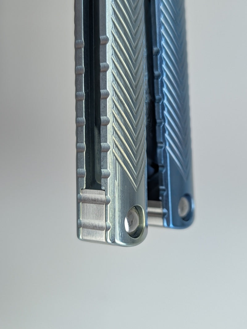 This balisong is a testament to the artistry of Penchetta, featuring exquisitely crafted handles with an Art Deco design. The handles showcase a striking aesthetic, blending form and function with a touch of vintage flair.
