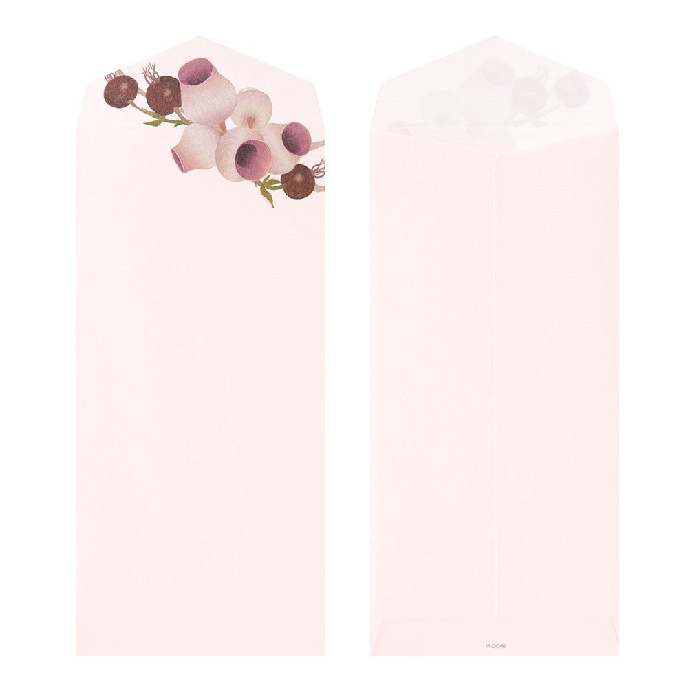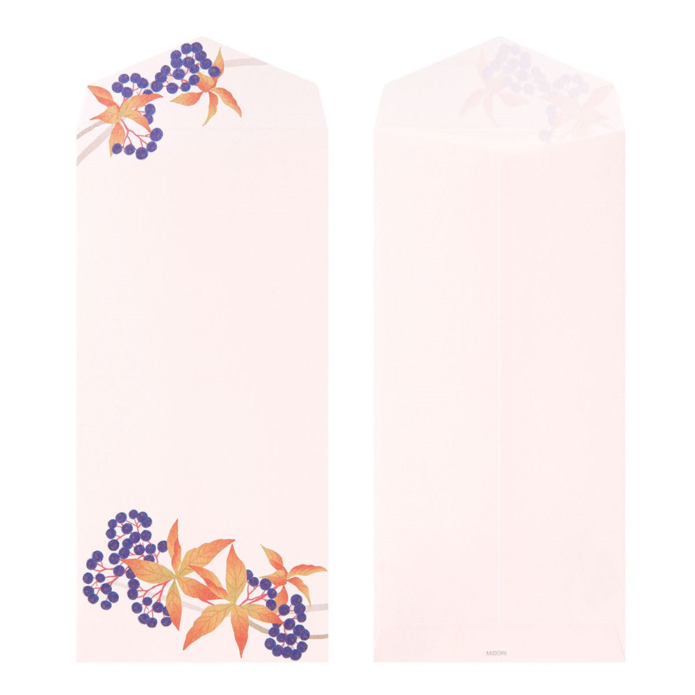 Enhance your letters with Midori Envelopes from the "Paper Series Autumn," showcasing a floral themed, silk printed, autumn wreath. Crafted from textured Iyo washi paper with distinctive brush marks.