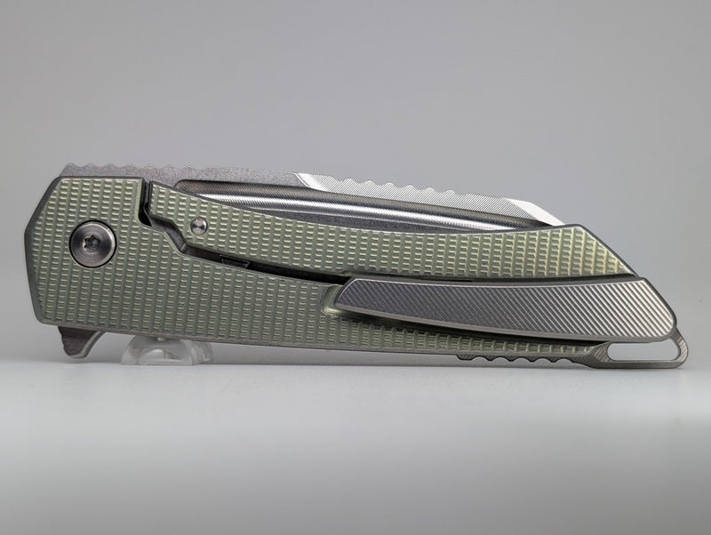 Mojave Sage Green w/ Distress (CPM 20CV | Stonewash | Grenade Handle) Framelock Folding Knife #851