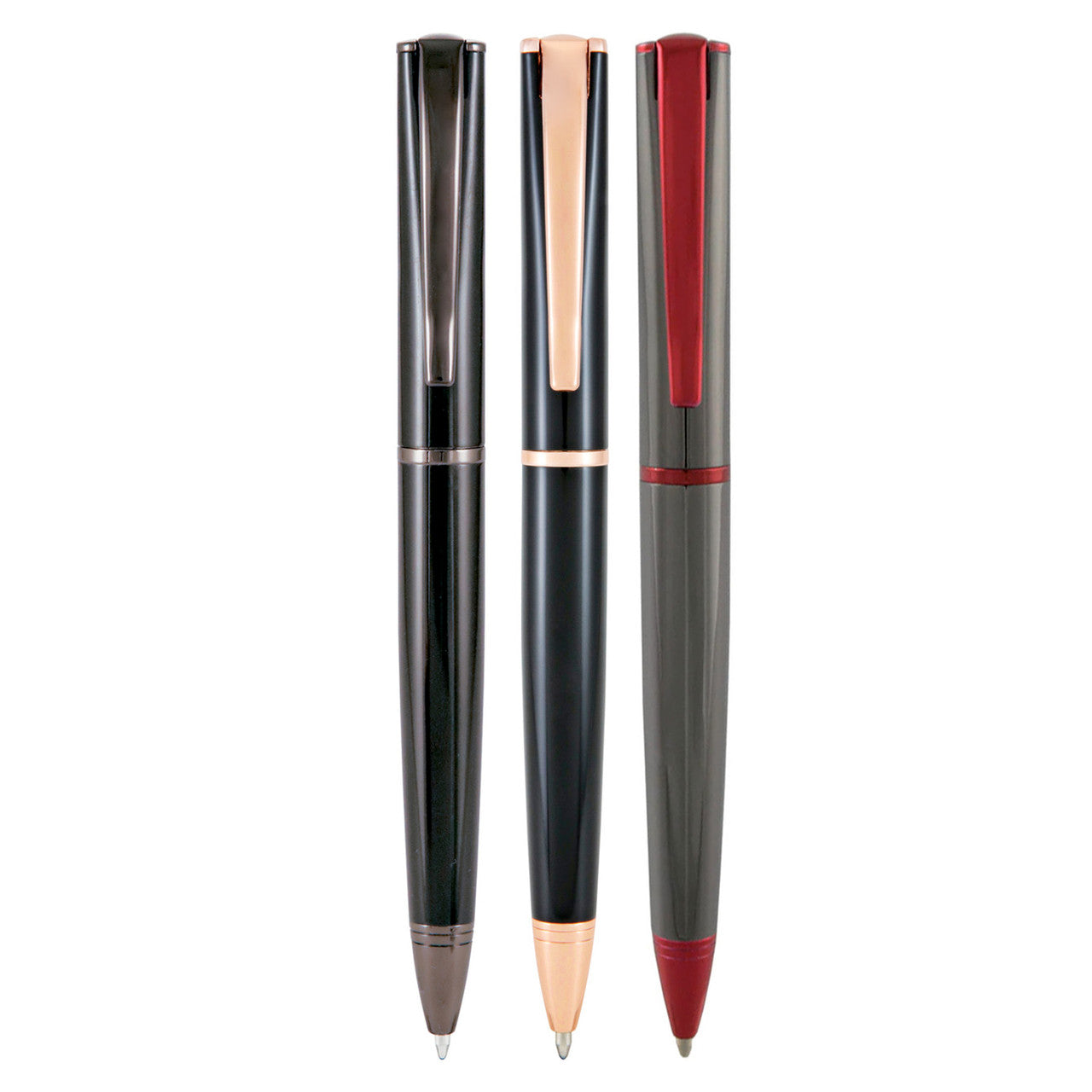 The modern design starts at the top of the cap with a perfect square which then effortlessly transitions into the round barrel. The sleek clip also starts at the top of the cap with a spring action that makes for smooth placement and removal from the pocket. The classic Black is available with either Chrome Trim or Rose Gold Trim. The Gun Metal has striking metallic red trim and the Pearl Silver is paired with a metallic blue. Mode choices are Ballpoint, Rollerball or Fountain Pen with a large flexible nib either in Fine, Medium, Broad or Stub. Fountain pen fills with Monteverde® standard international G3 ink cartridges or piston ink converter (included).The flexible stainless steel nib is available in fine, medium, broad and stub sizes. Ballpoint accepts P1 and P4 refills and the capped rollerball accepts the G2 and W2 refills.