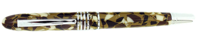 The Cap has a Chrome Plated Clip that displays gorgeously with the browns, greens, and white/pearl colors. The Chrome accents have the "MONTEVERDE" stamped as well as the Monteverde logo stamped on the clip.