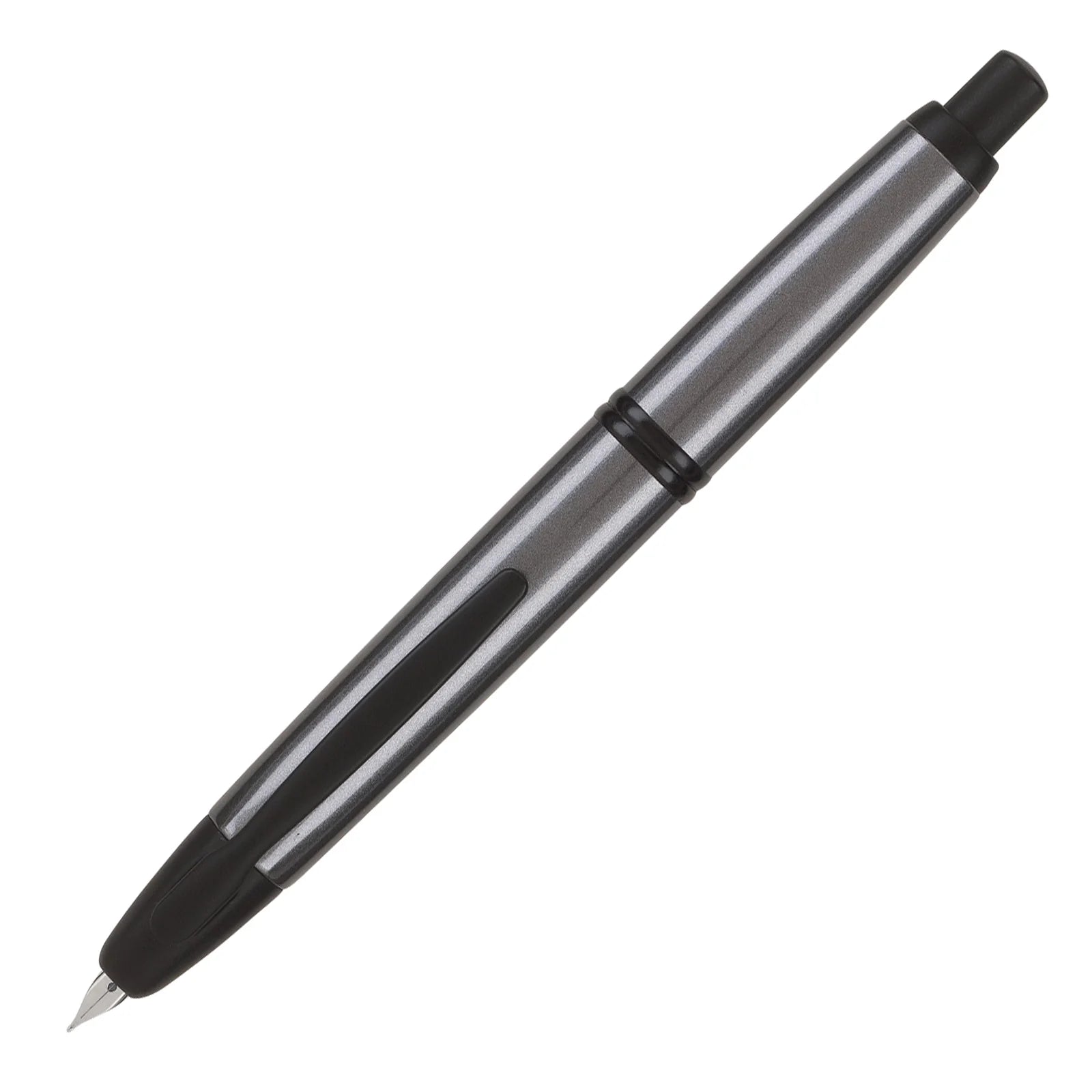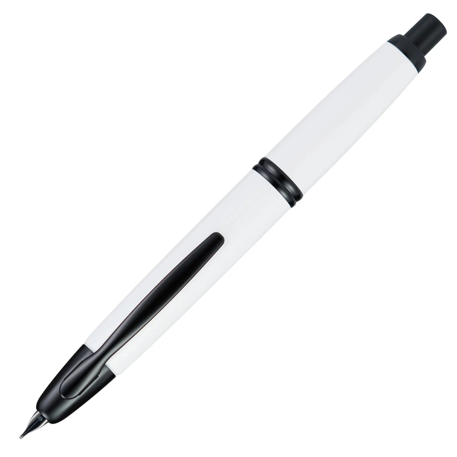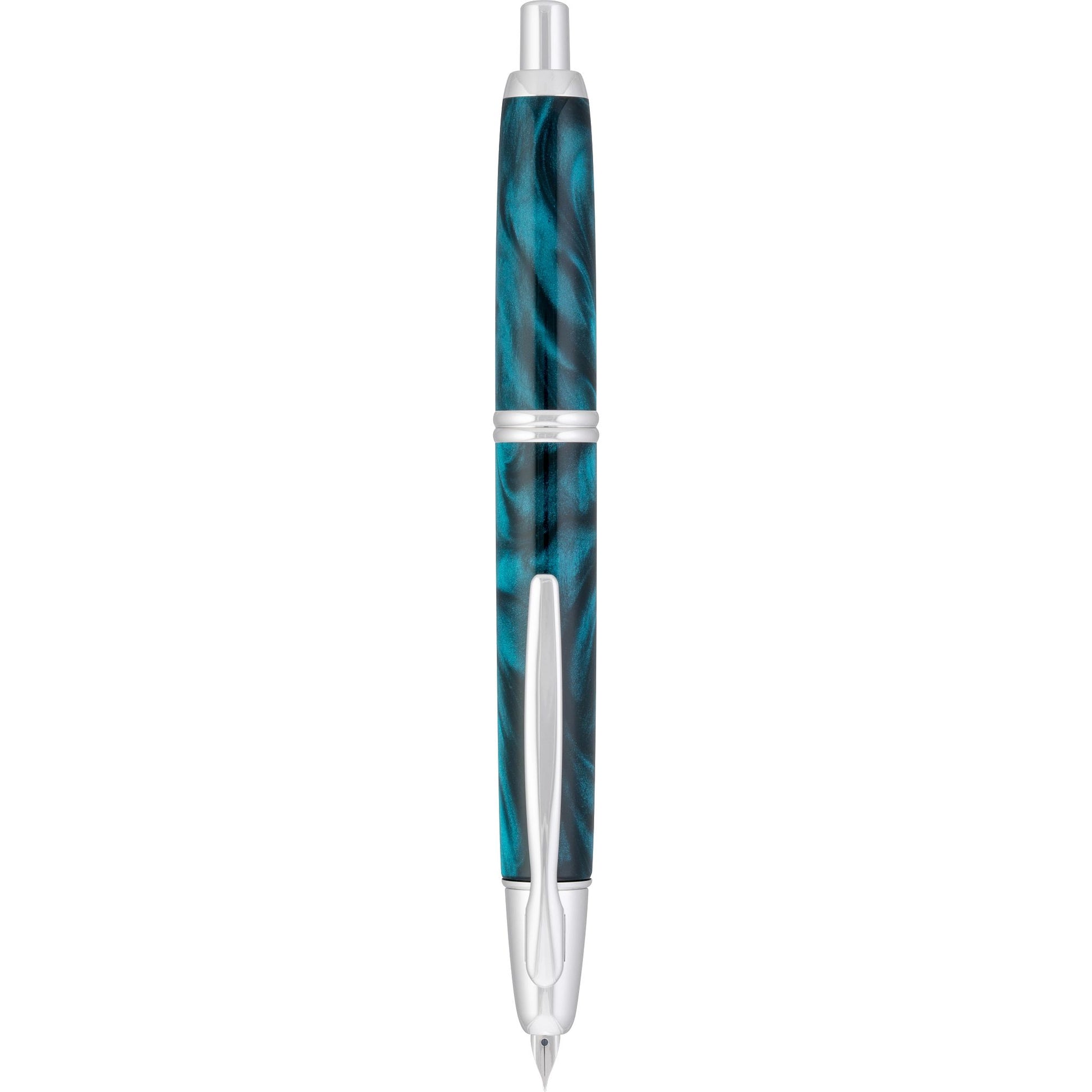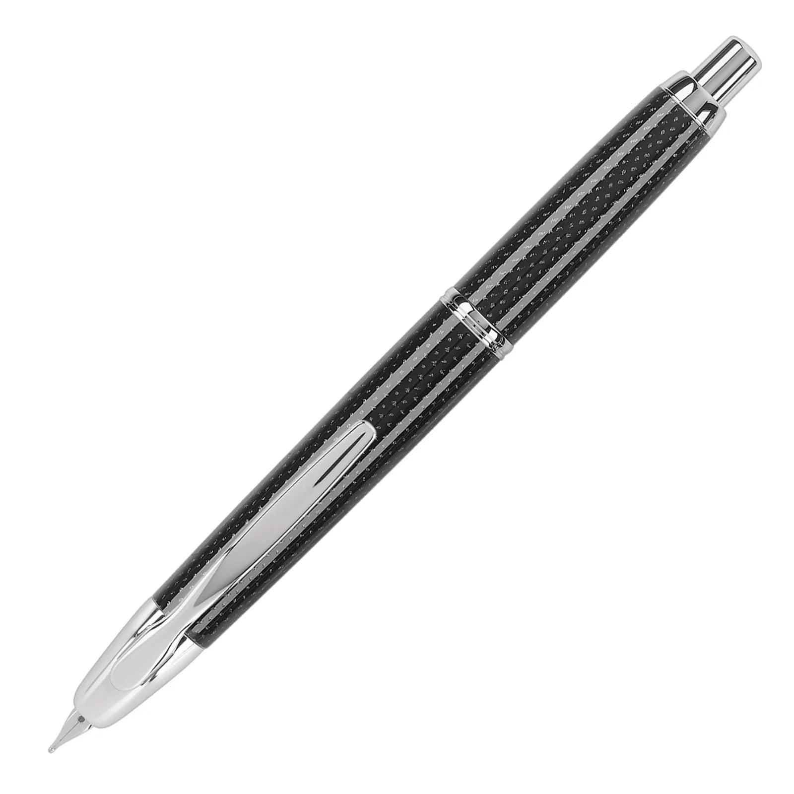 The Vanishing Point retractable fountain pen is a product rich in both history and performance. Its brilliant design and ingenious technology make it a pen for the new age. A larger size, durable metal body and attractive appointments make the Vanishing Point unmistakably unique. Available in black, blue and red barrel colors with gold or rhodium accents, black or blue carbonesque finishes with rhodium accents, and yellow, brown, raden, chrome, white and gun metal gray finishes with rhodium accents. All are available with an 18 karat gold fine, medium or broad nib. Each Vanishing Point fountain pen is beautifully merchandised in a gift box.