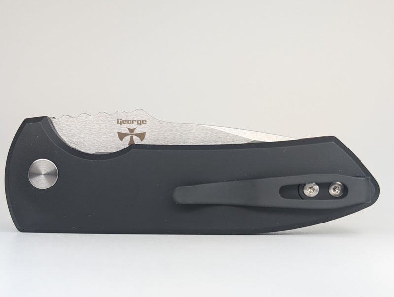 The Pro-Tech SBR is a smaller, lighter, and more pocketable version of the popular Rockeye, hence the name SBR, or Short Bladed Rockeye. It's designed by Les George, a veteran of the United States Marine Corps and master craftsman of tactical knives. The blade features a useful drop point with a patch of jimping that gives you superb control of the knife. The titanium handle has knurling which makes for a tactile gripping surface, with just enough contouring to make it comfortable. For ease of carry, the pocket clip, and its screws, are recessed into the handle, making sliding it in and out of the pocket easy.