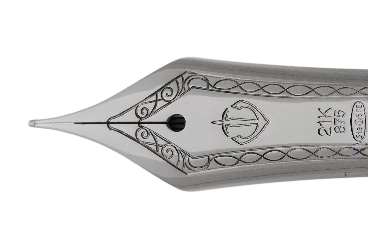 The Sailor CYLINT has a black ion-plated pen clip, cap ring, and a weighted black ion-plated metal grip section. The fountain pen shines with a black ion-plated 21k gold nib.